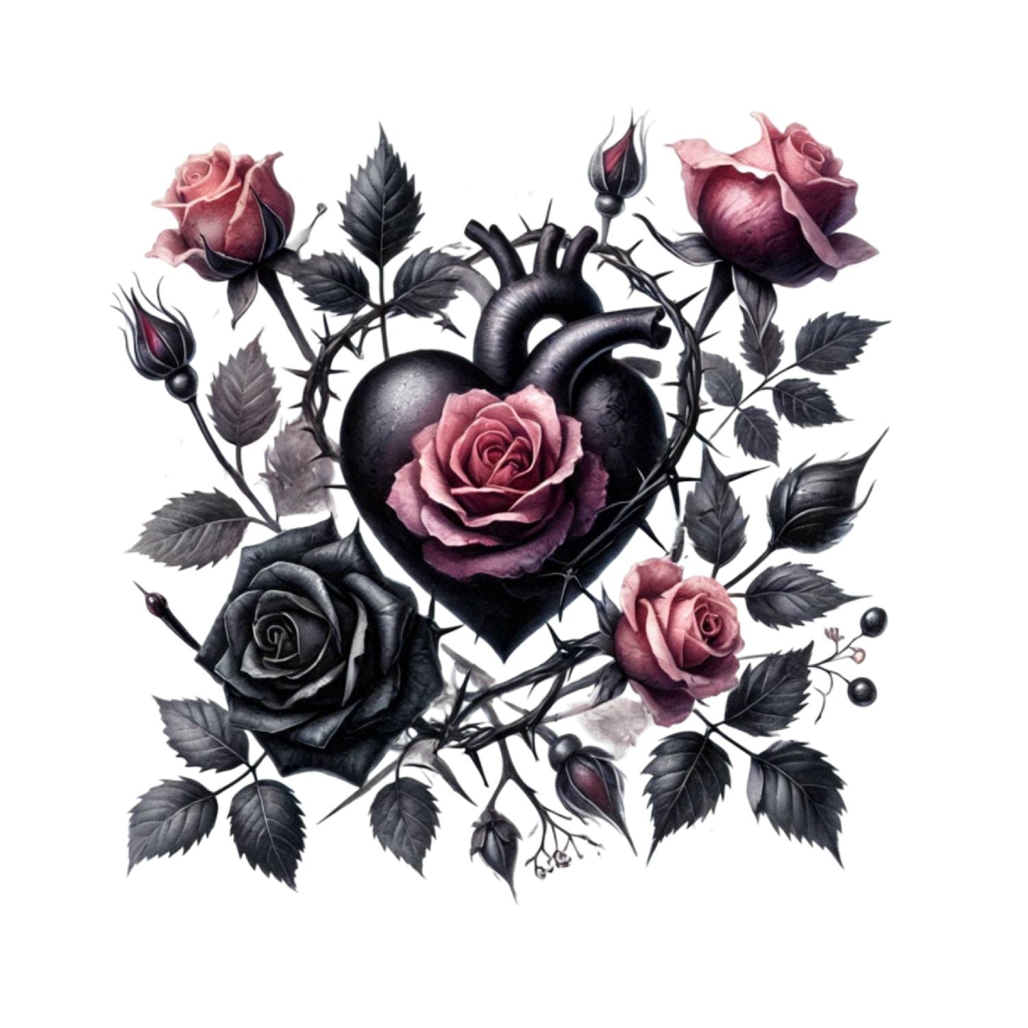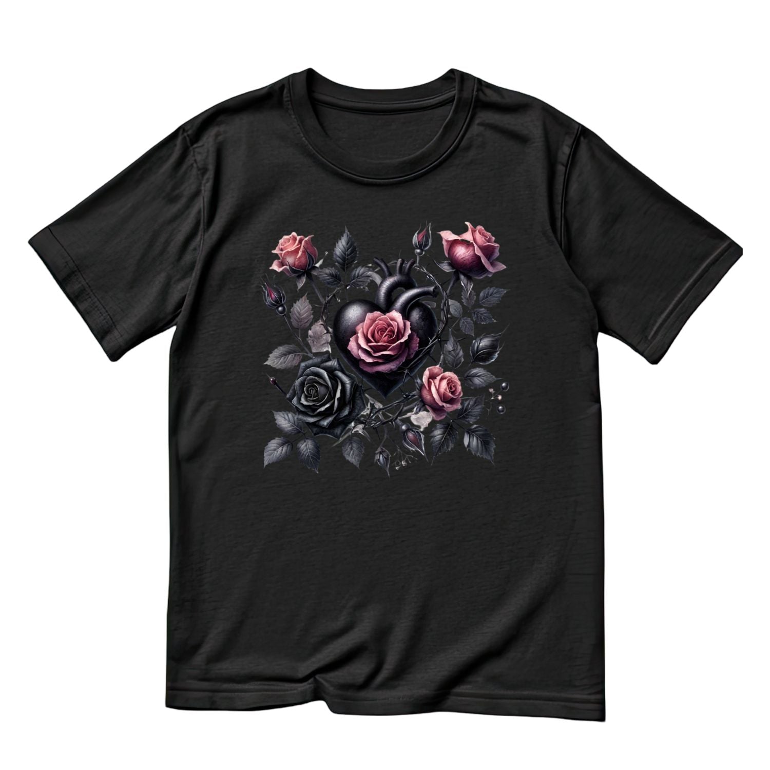 Pink & Black Roses Heart T-Shirt | Gothic | Dark Valentine