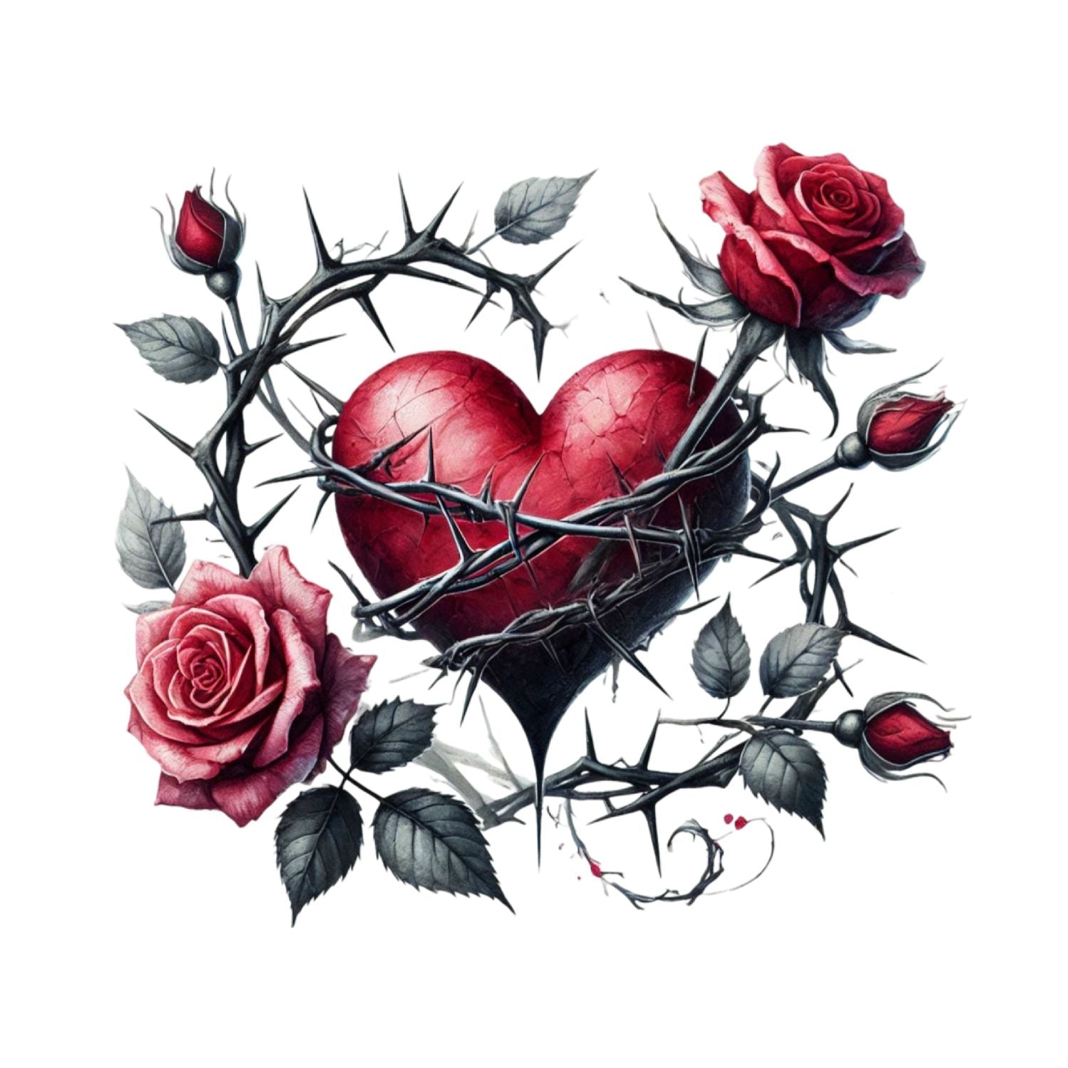 Red Heart of Thorns T-Shirt| Roses Thorn Heart | Gothic | Dark Valentine
