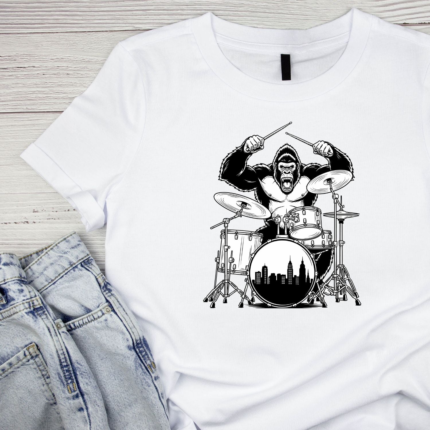 Gorilla Playing Drums City Drum T-Shirt| Music | Songs | Band| Graphic Tee