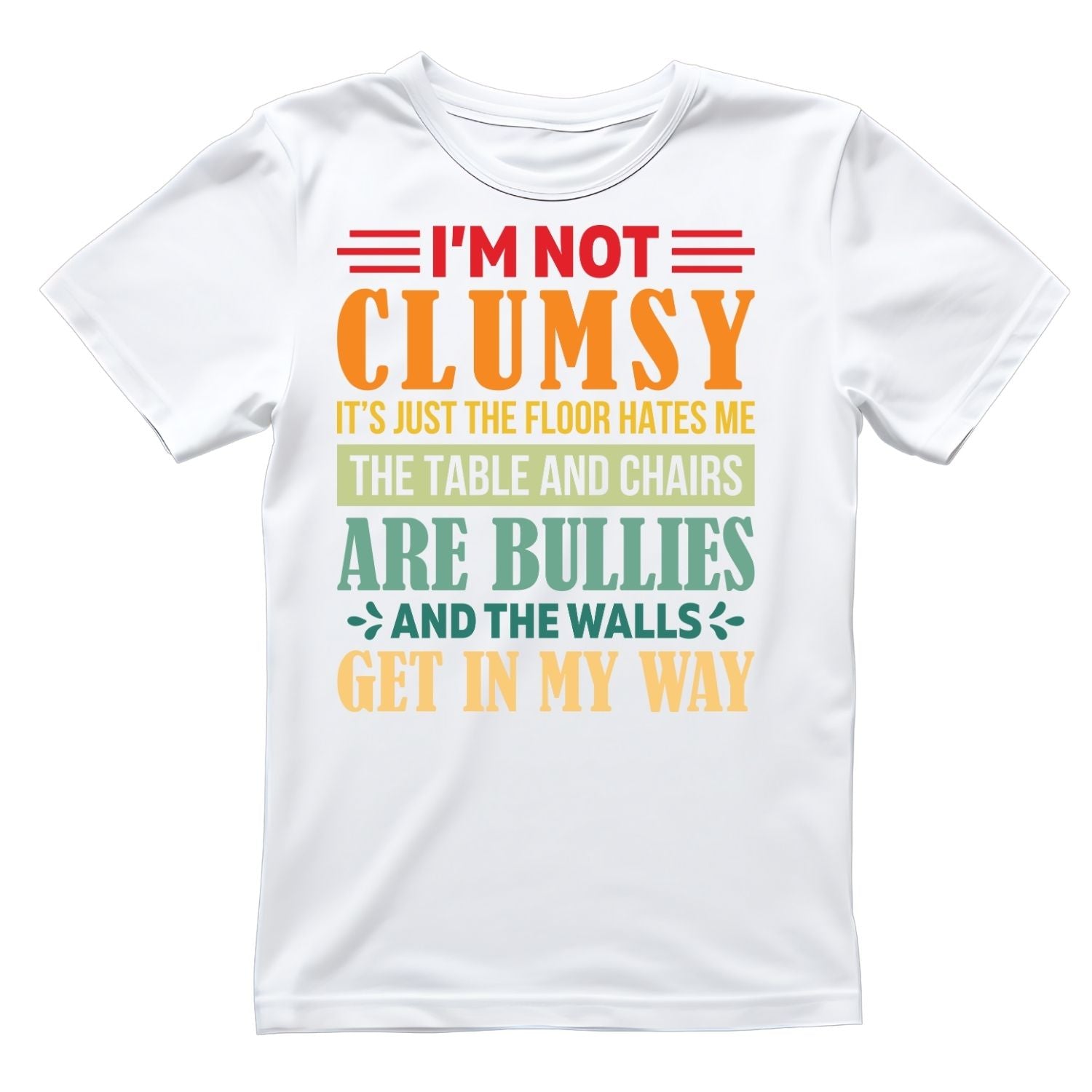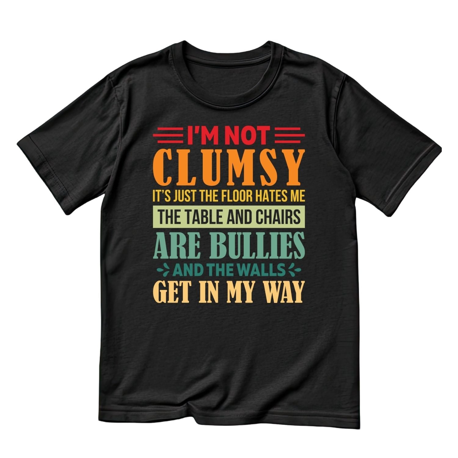 I’M NOT CLUMSY IT’S JUST THE FLOOR HATES ME THE TABLE AND CHAIRS ARE BULLIES AND THE WALLS GET IN MY WAY T-SHIRT