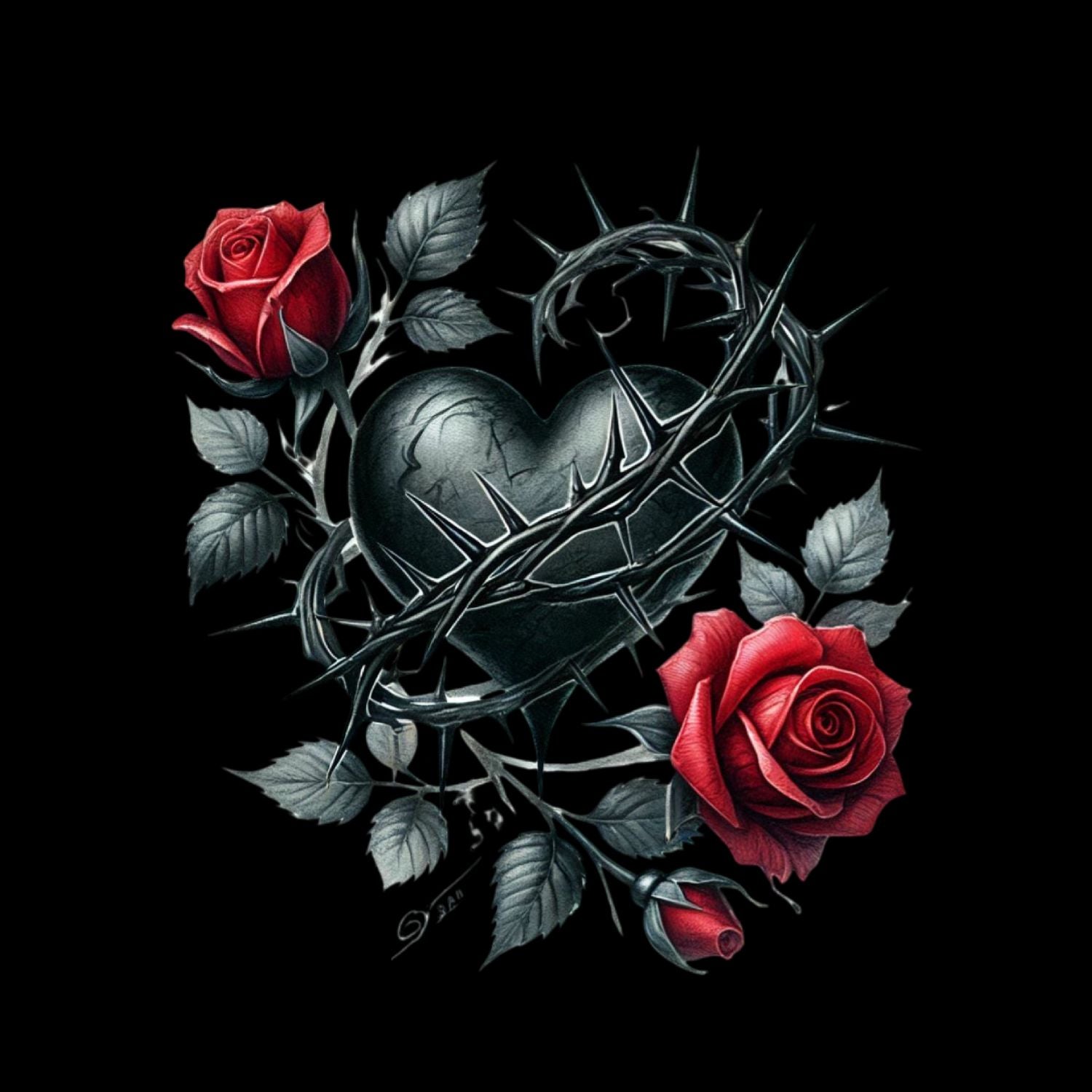 Black Heart of Thorns T-Shirt| Red Roses Thorn Heart | Gothic | Dark Valentine
