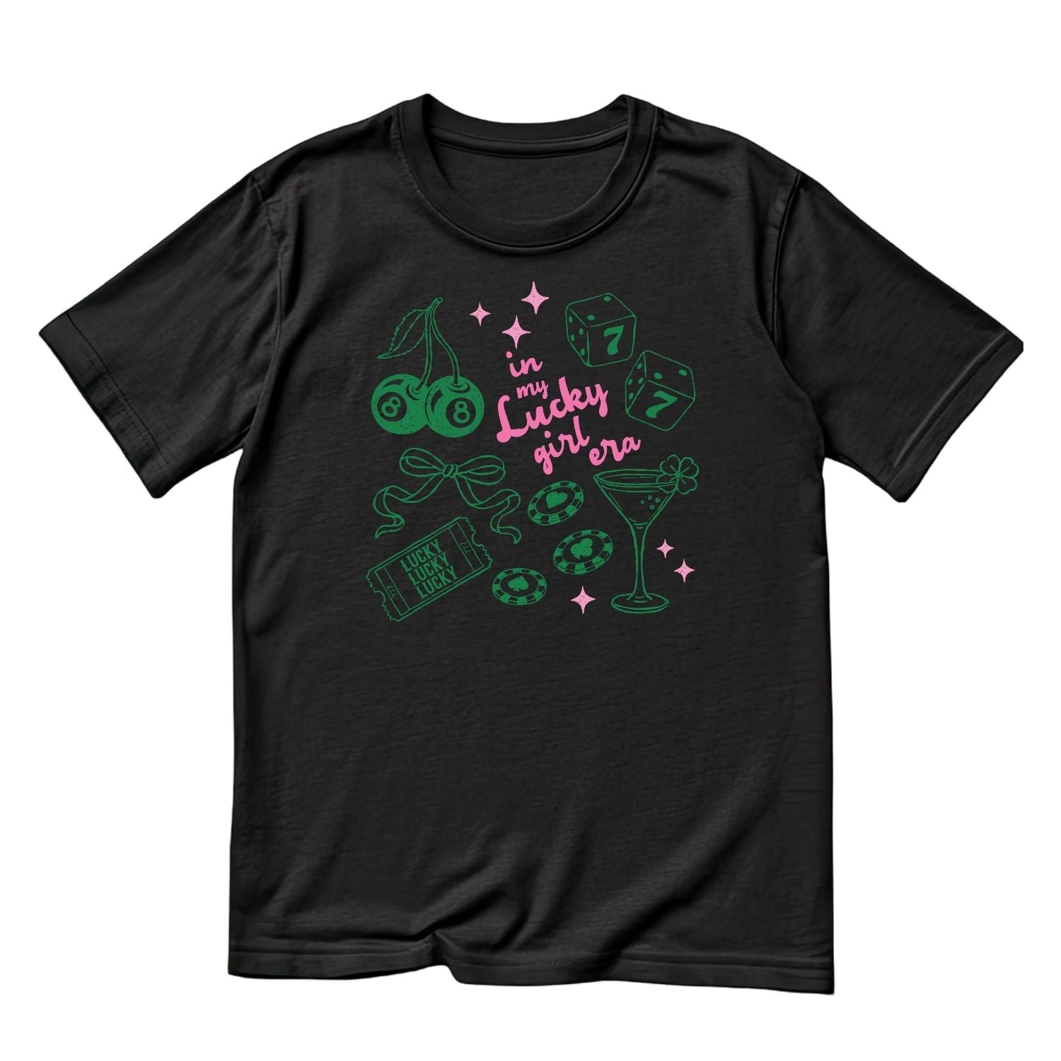 In My Lucky Girl Era T-shirt | St Patrick’s Day T-shirt | Girl’s Night Out | Dice Martini Poker Chips