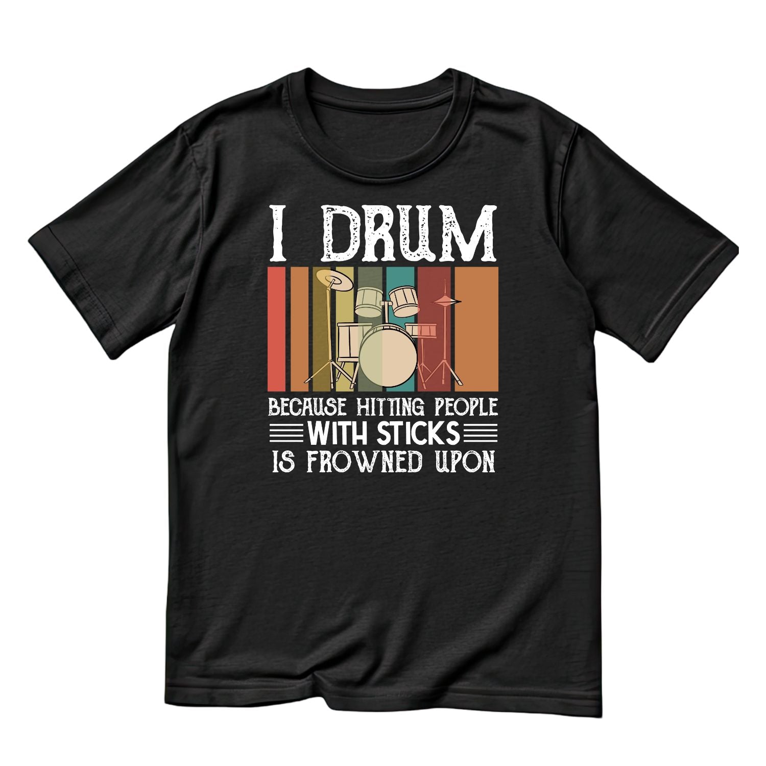 I Drum Because Hitting People With Sticks Is Frowned Upon T-Shirt | Funny Joke Sarcastic | Gift | Drums | Music | Band | Graphic Tee