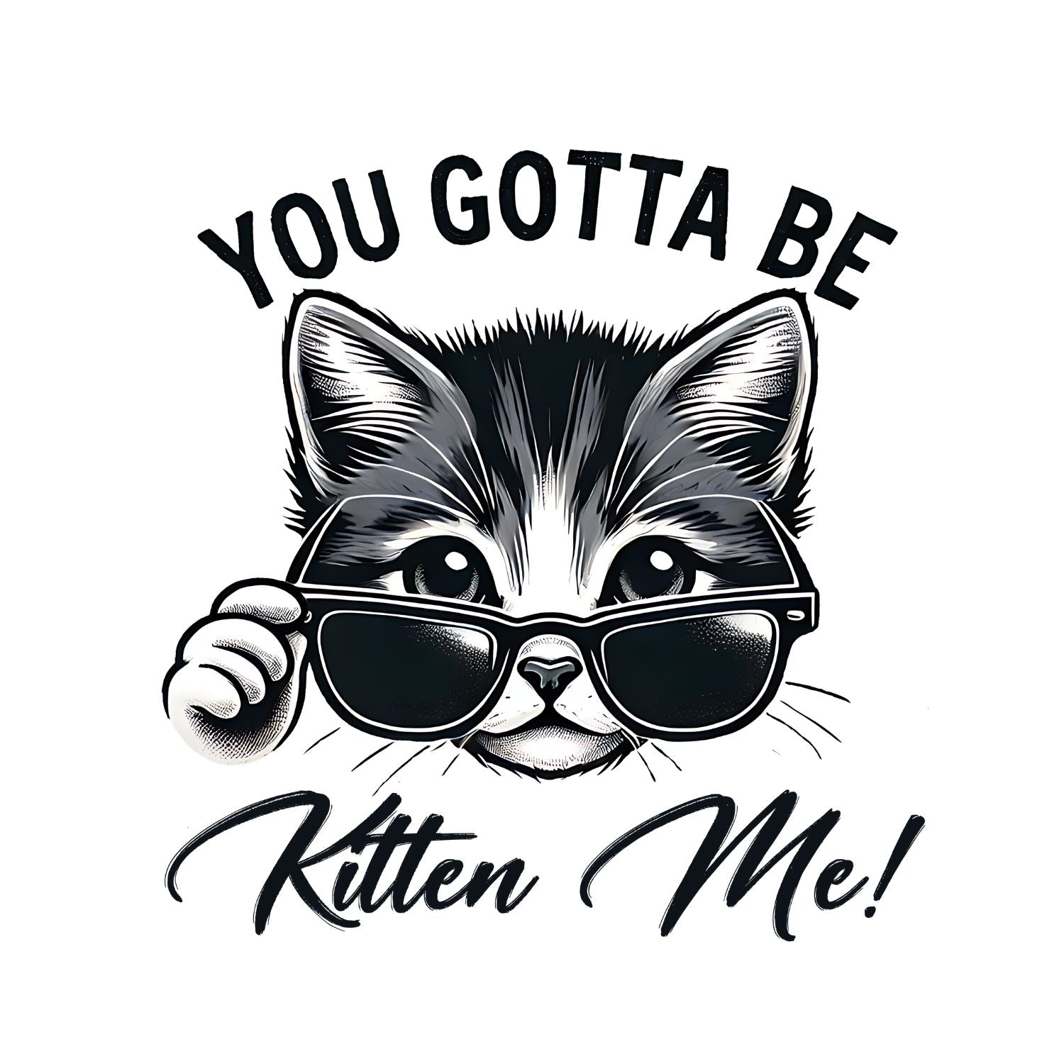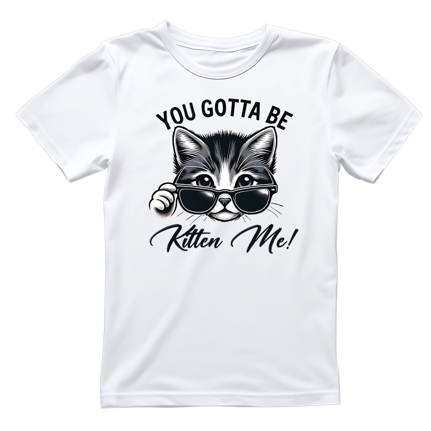 You Gotta Be Kitten Me Cat T-Shirt| Black & White | Cat Kitty Kitten | Joke Sarcastic Funny | Wearing Sunglasses